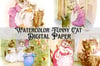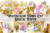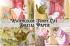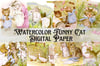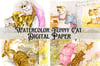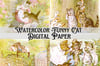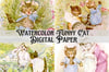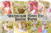 Watercolor Funny Cat Digital Paper, Watercolor Funny Cat vintage paper, Watercolor Funny Cats Background.