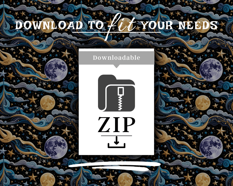Step into the cosmic realm with our Celestial Bodies 50+ Patterns Collection — a mesmerizing set of digital papers inspired by the wonders of the universe. From shimmering stars and radiant suns to mystical moons and planetary motifs, each seamless pattern captures the beauty of outer space in intricate detail. Perfect for scrapbooking, card making, sublimation, fabric design, packaging, or any creative project that needs a celestial touch.