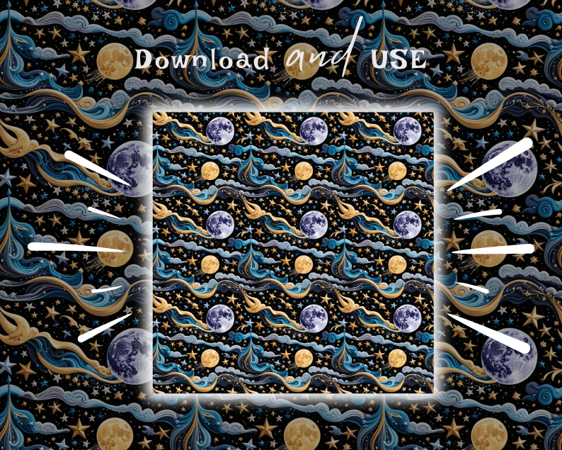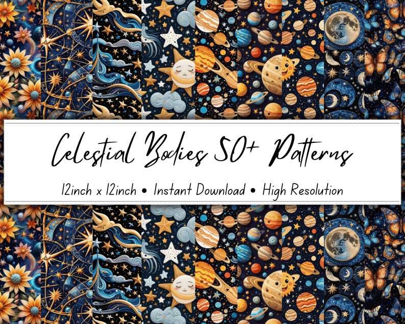 Celestial Bodies 50+ Patterns Collection | 12x12 Inches | High-Resolution Digital Printables | Instant Download