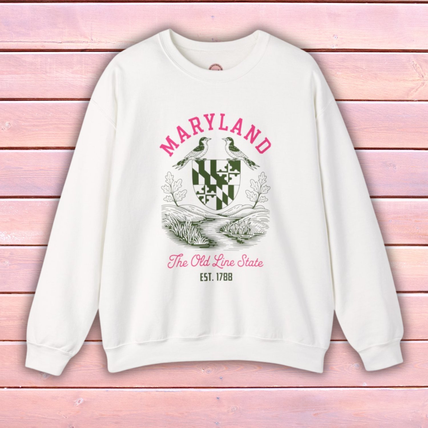 Maryland State Pride Unisex Crewneck Sweatshirt – Cozy Vintage-Style Gift for Marylanders, Cold Weather Apparel with Coastal Charm