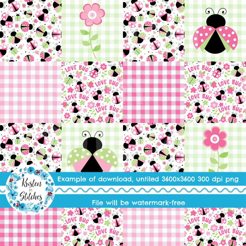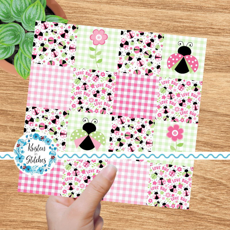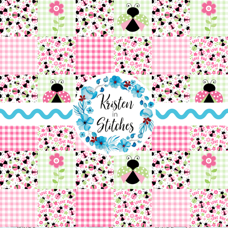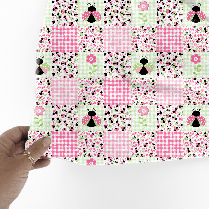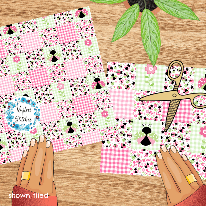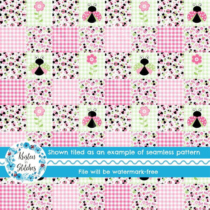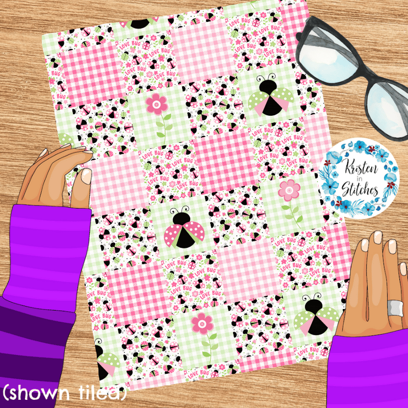 Ladybug Patchwork Seamless Pattern, Pink Love Bug