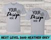 Front and Back Heather Grey Tshirt Mockup, Heather Grey Next Level 3600 T-shirt MockUp, Digital Mockup, Instant Download, Unisex Illustration