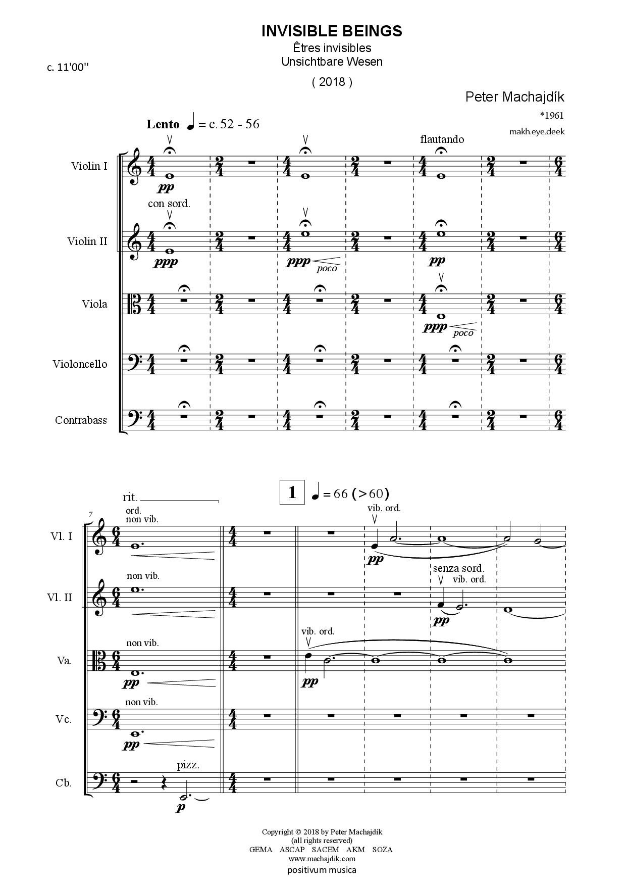 Peter Machajdík : INVISIBLE BEINGS for string orchestra (Digital Sheet Music) [full score and parts]