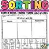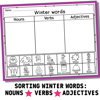 Winter words Sort worksheets - Parts of Speech | nouns verbs adjectives
