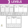 - Level 3: 3 worksheets: only Words. The student will write the words in a table with no rows.