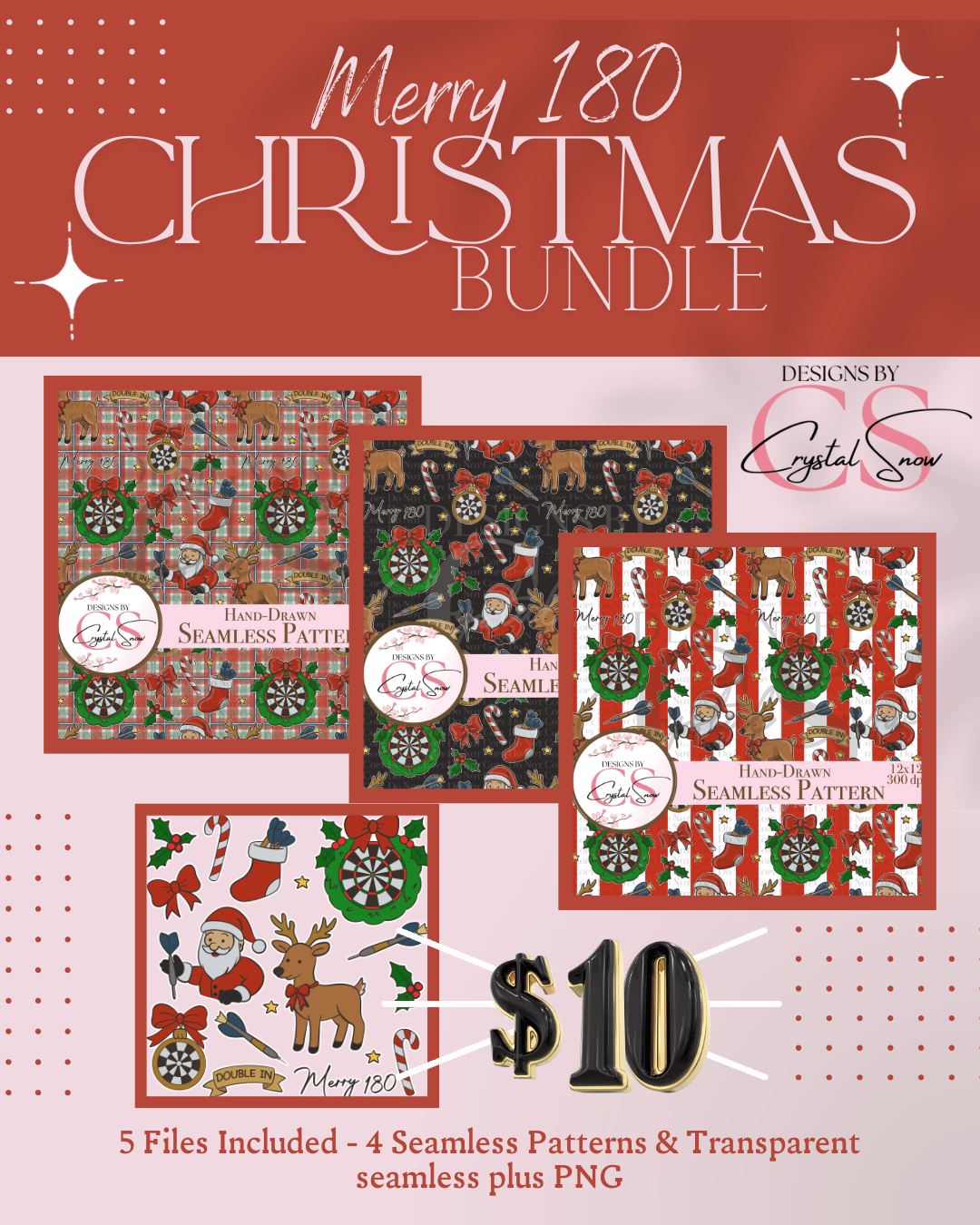 Hit the bullseye this holiday with the Merry 180 Christmas Bundle! 🎯 Hand-drawn dartboard, reindeer, and Santa designs — perfect for wrapping paper, crafts, sublimation, and more.