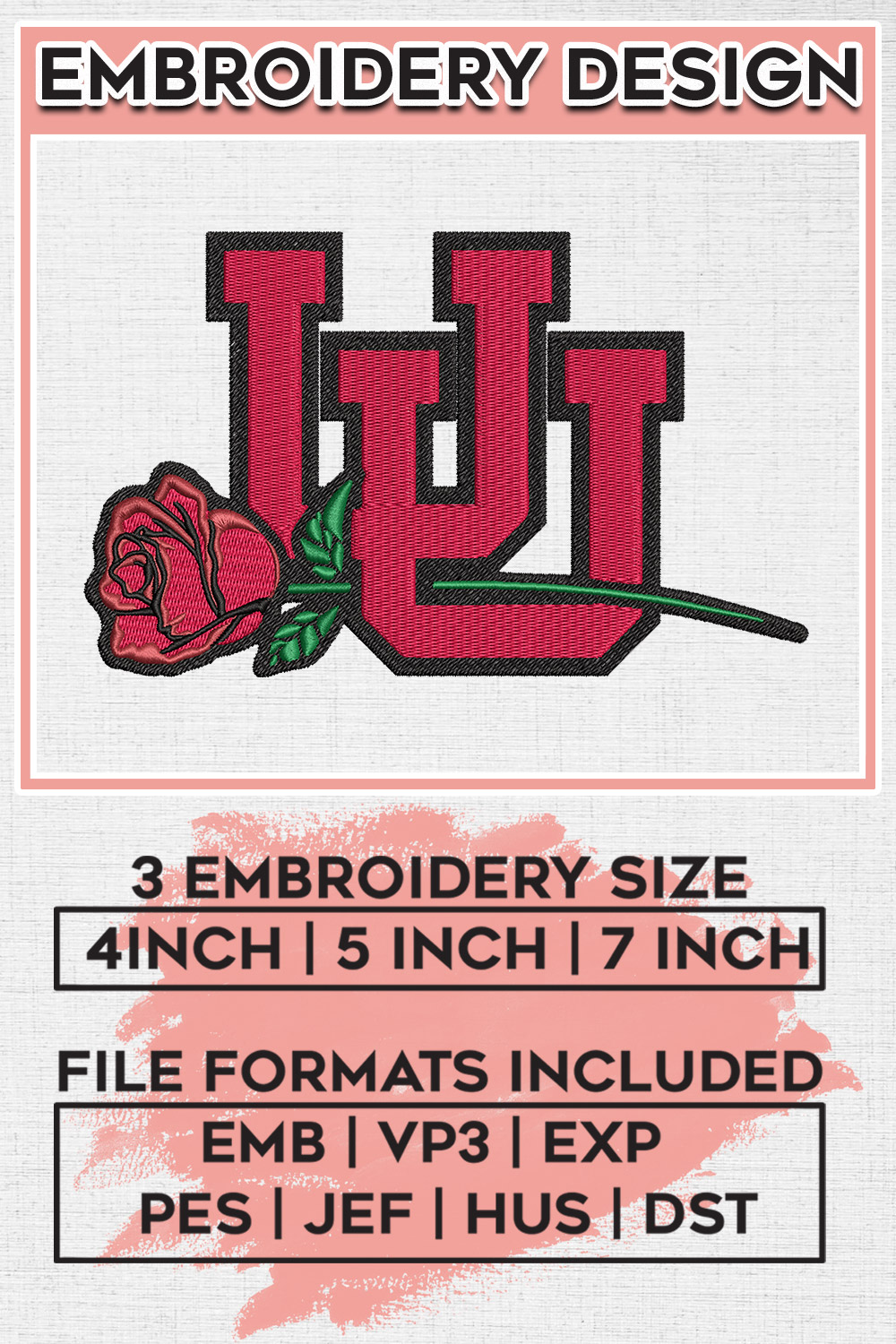 NCAA Utah Utes Football Team Flower Logo Embroidery Designs, NCAA Utah Utes Machine Embroidery Files, NCAA Logo embroidery designs, NCAA Utah Logo, Digital Download