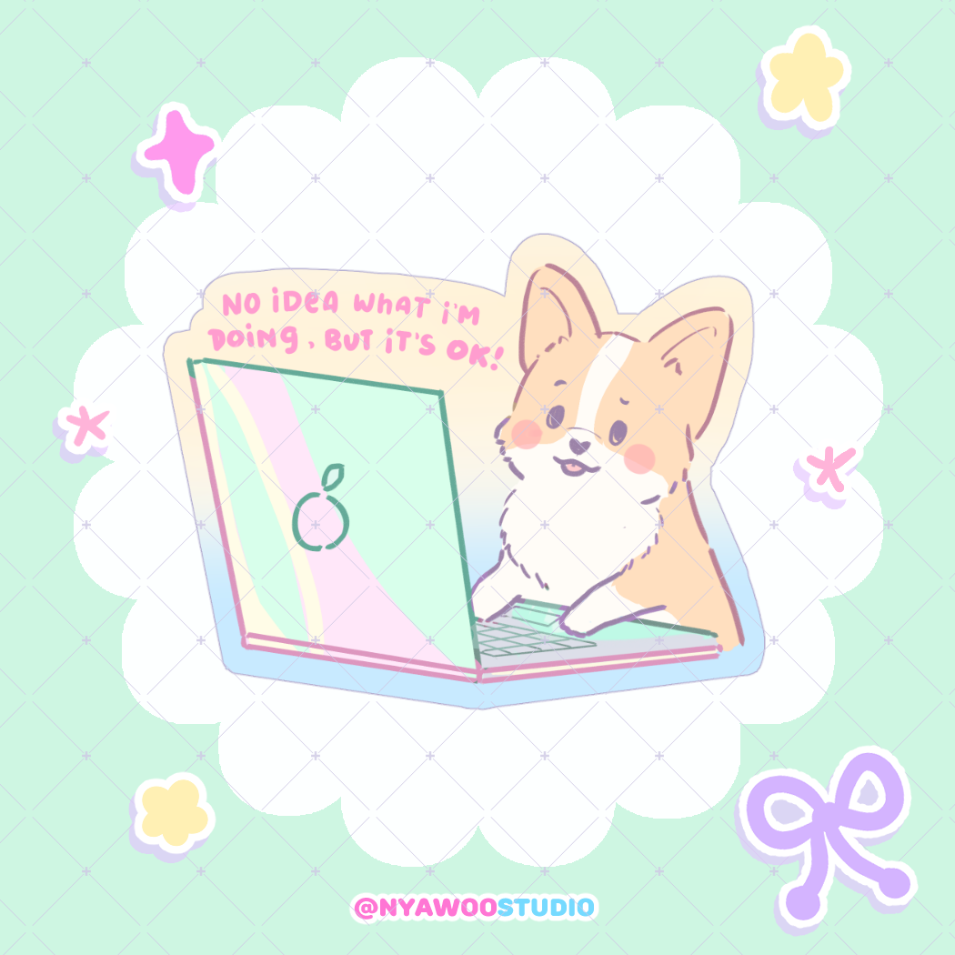 No Idea What I'm Doing Corgi Dog Waterproof Sticker Flake