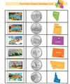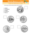 The section on state coins opens up with an easy-to-understand explanation of the US Mint's special state quarters. From there, the book is divided up into the following sections: Southern states, Mid-Atlantic states, New England states, Southwest states, Western states, Pacific states, and Territories.Matching state names to their quarters is easy and fun for children and even teens. It gets students familiar with all the state quarters. If you are memorizing state quarters, then these printable pages can be used over and over to help with the memorization process.