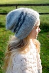 Choose a size approx. 7-10 cm (3 ½ -4 in) less than your actual head size for a snug fit or 3-5cm/1 ¼ -2in less for more relaxed slouchy fit (work the length of the next size up if choosing the greater amount of ease) Shown modelled with 5cm/2 in of negative ease in the adult M on a 53cm/20 ¾ in head.
