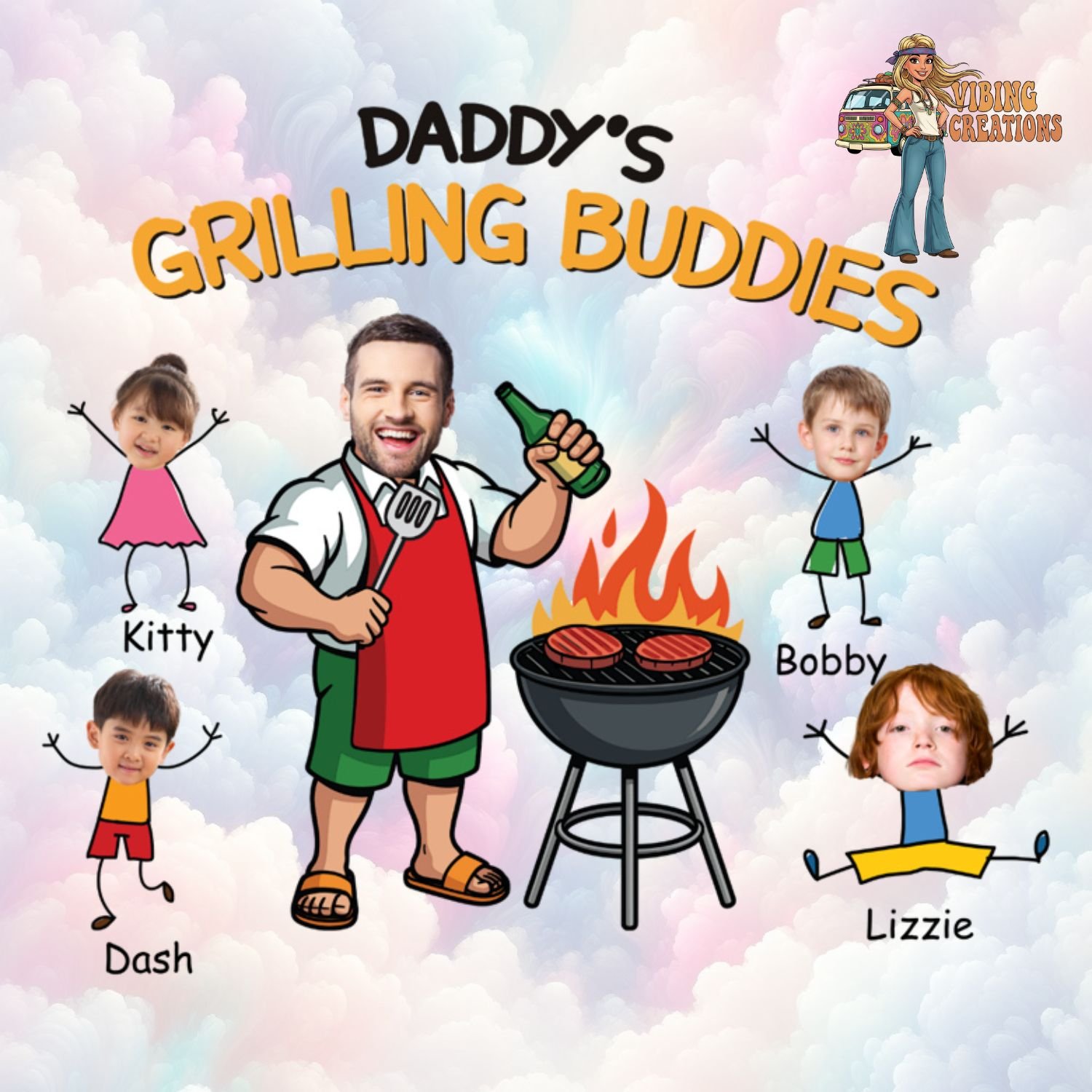 Custom Daddy's Grilling Plate with Kids' Names Template