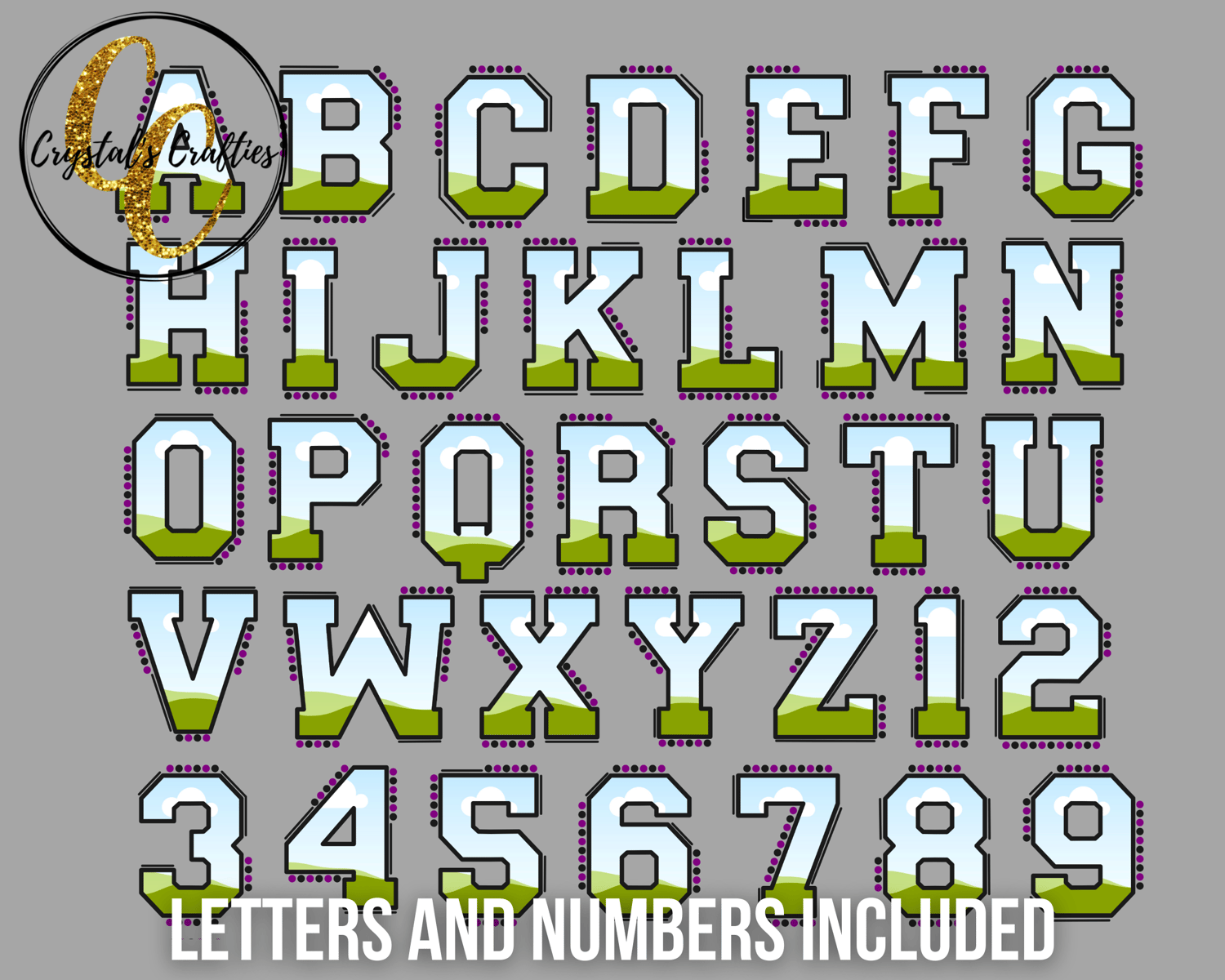 – A full A-Z set of varsity-style letter frames and numbers 0-9