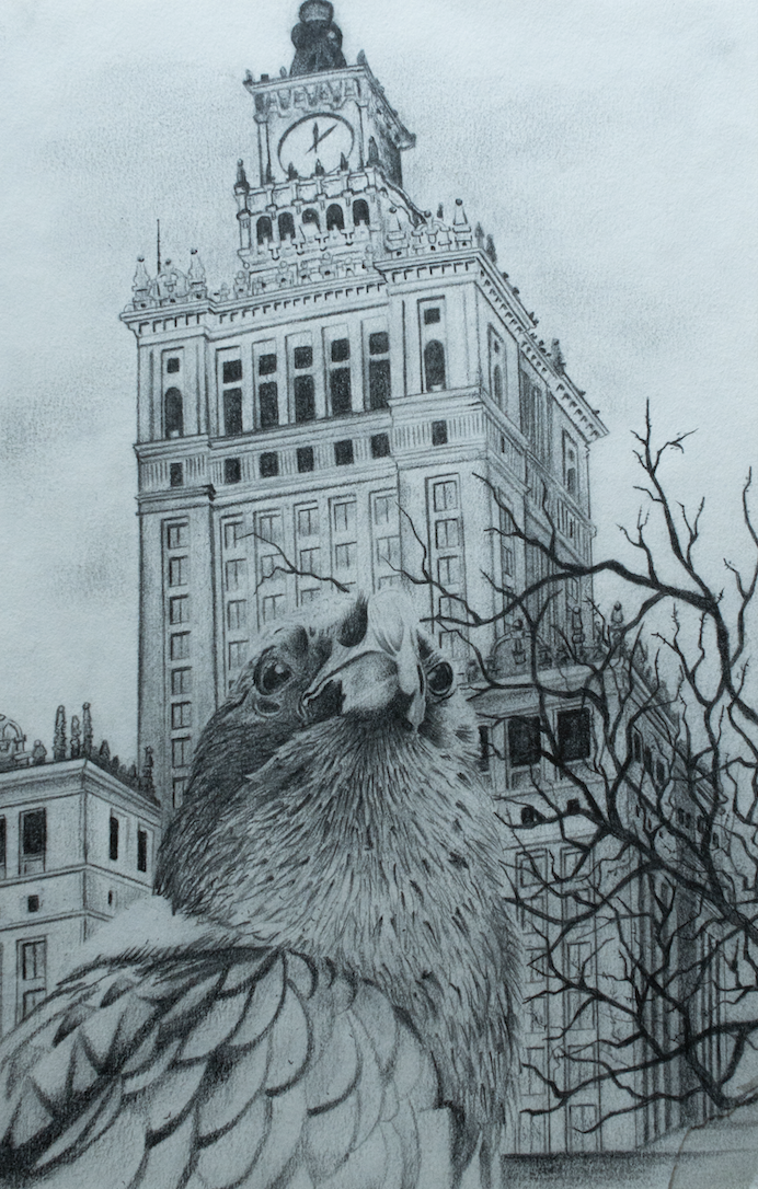 Print of the drawing "Warsaw 2018" Inspired by my life events during that year, my first dark winter in that country and the presence of these birds, something completely new for me, made the experience darker.