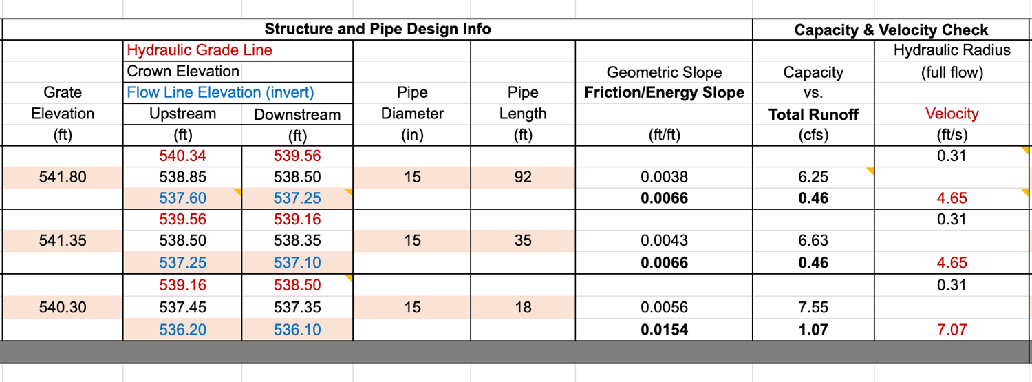Storm Tabulations (Hydraulic Grade Line / Velocity)