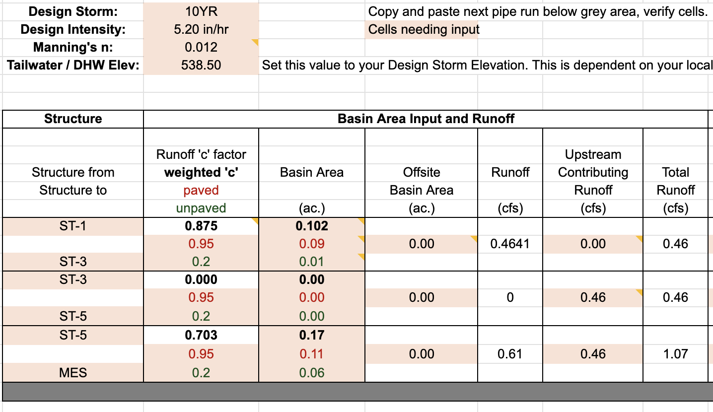 Stormwater Rational Method & Manning’s Pipe Capacity Calculator