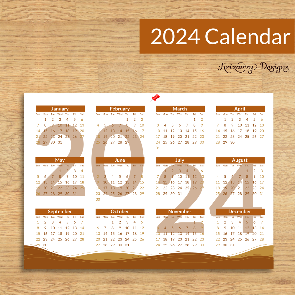 Do you need a display calendar that is simple and has a straight forward design? Fret no more. You just found it! Hang, pin and display this 2024 Calendar (brown/ chocolate/ coffee color) wherever you want.