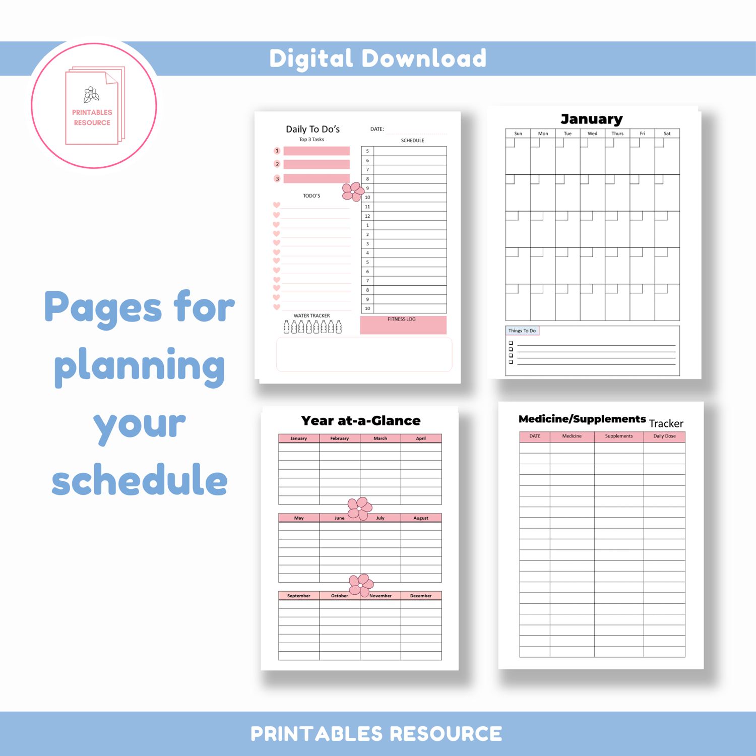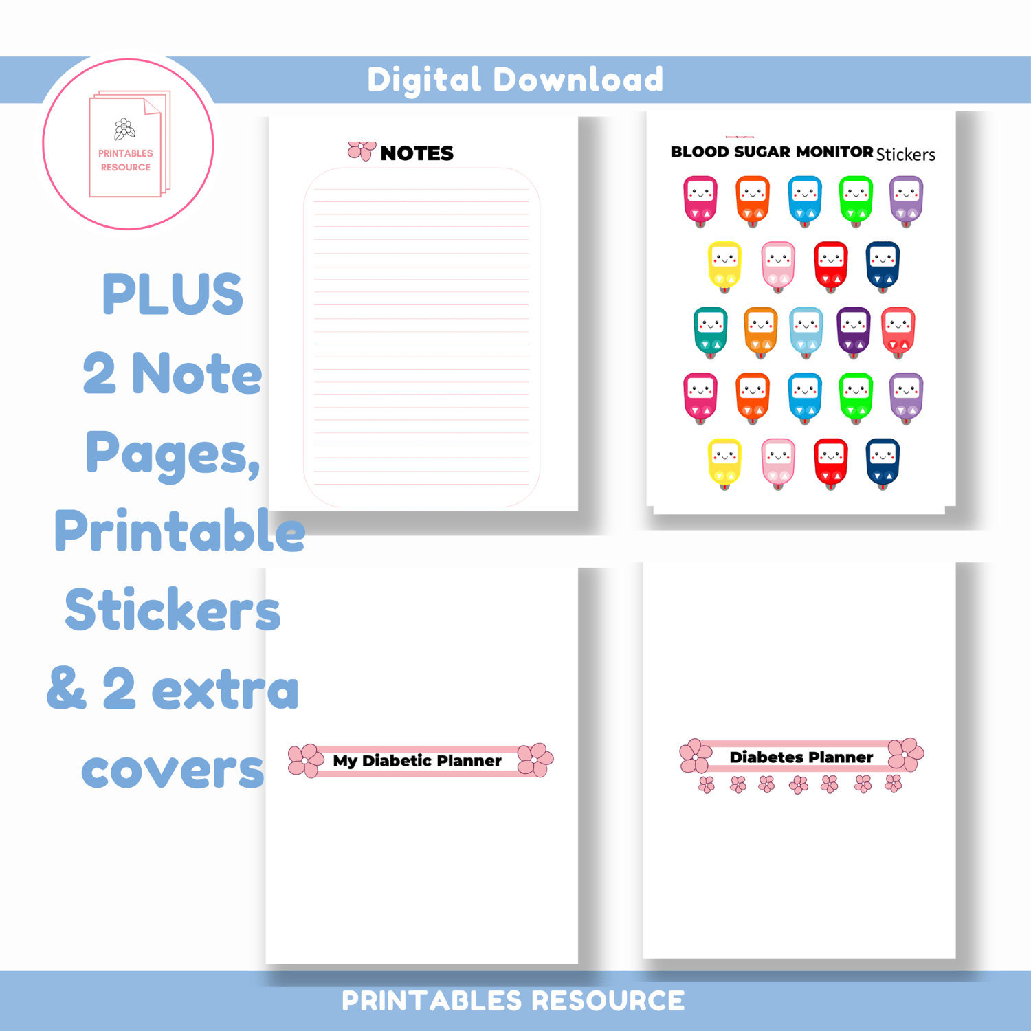 This Diabetes Management Planner, in US Letter size, will help keep information organized with one spot to record your levels each day plus a whole lot more! Tracking blood sugar levels is especially important if you or a family member have diabetes. An easy way to not only monitor and track your vitals, as well as plan for your daily, month and year schedule, track doctor appointments and know exactly what you are going to eat for each meal! 🙌 Plus there are two pages for notes and a sheet for DIY printable stickers. It is simple and easy to use!