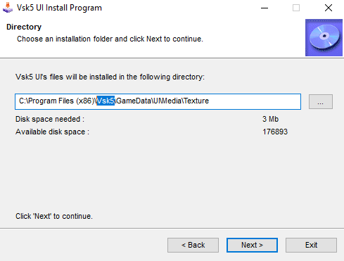 If installing into Vsk5Online, change the installation directory path from "Vsk5" to "Vsk5Online".