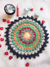 The Fruit Punch mandala started out as an experiment of some stitch and color combinations and turned into a bright, textured design! Have a look at our testers' versions too, showing off lots of different color choices!Â