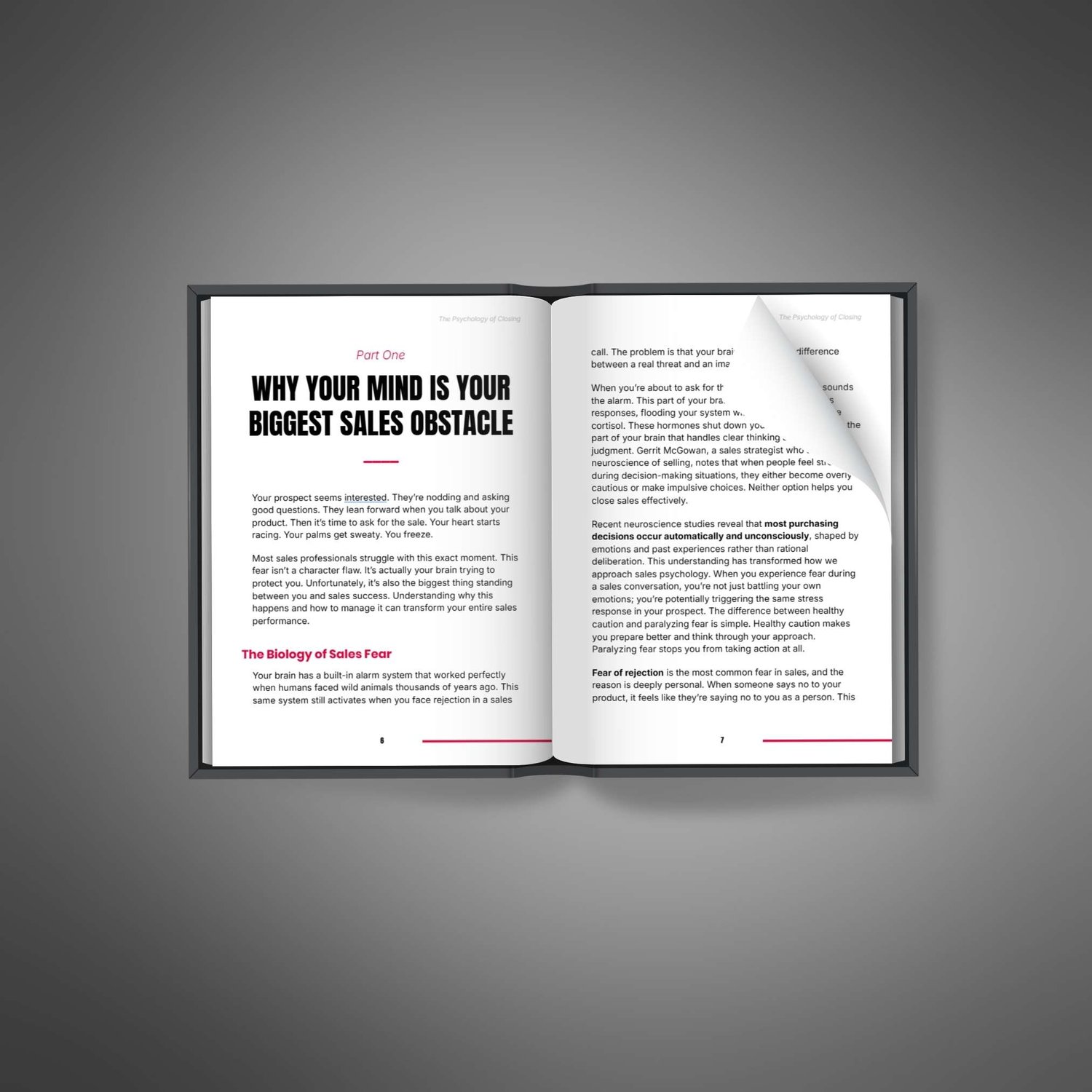 This ebook reveals the mental frameworks that separate confident closers from those who struggle. You'll discover why closing feels uncomfortable in the first place and how to rewire your approach. You'll learn to read buying signals so you know exactly when to ask. You'll handle objections without getting defensive or desperate.