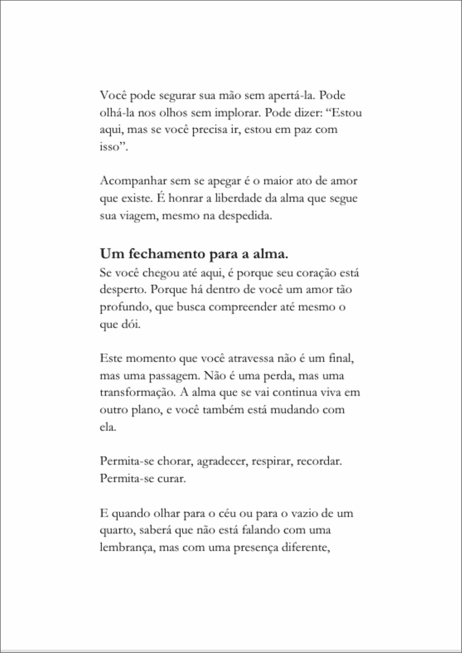 Um abraco para atravessar a despedida e lembrar que nada termina.