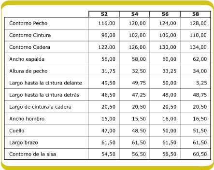 Verifica las medidas de cada talla en el cuadro adjunto.