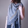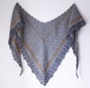 It’s a triangle shawl, knit from the top down and spiced up with a subtle pattern in masculine colors.