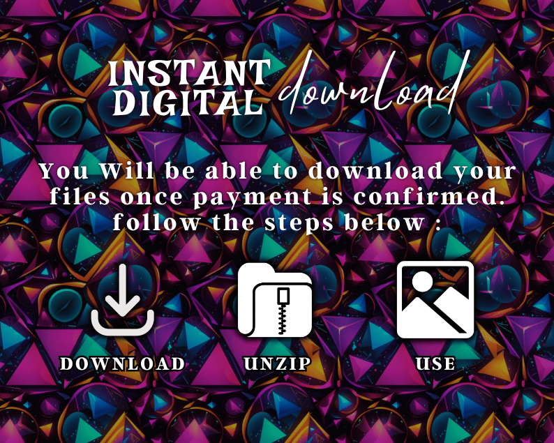 Illuminate your creative projects with the vibrant and captivating Neon Lights 50+ Patterns Collection. This stunning digital collection features over 50 high-resolution patterns inspired by the mesmerizing glow of neon lights. Perfect for designers, artists, and crafters, these printable patterns can be used for a variety of projects, from scrapbooking and wall art to product designs and stationery. The patterns are sized at 12x12 inches, ensuring they are perfect for both digital and print use. With an instant download, you'll have these neon-inspired designs ready for your next project within moments!