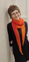 The sample shown is worked an interesting gradient: all shades of bright orange. It would look just as good in a solid or semi-solid color, or even a speckle-effect colorway. I wouldn’t recommend a very busy variegated yarn, as you’d lose the definition of the ribs.