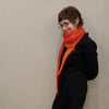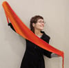 A long and skinny triangular shawl, worked in single-color brioche. Reminiscent of a classic ribbed scarf, this is both more interesting to knit and wear: the ribs lie on the diagonal making for great drape, and the fabric is squishy and warm.