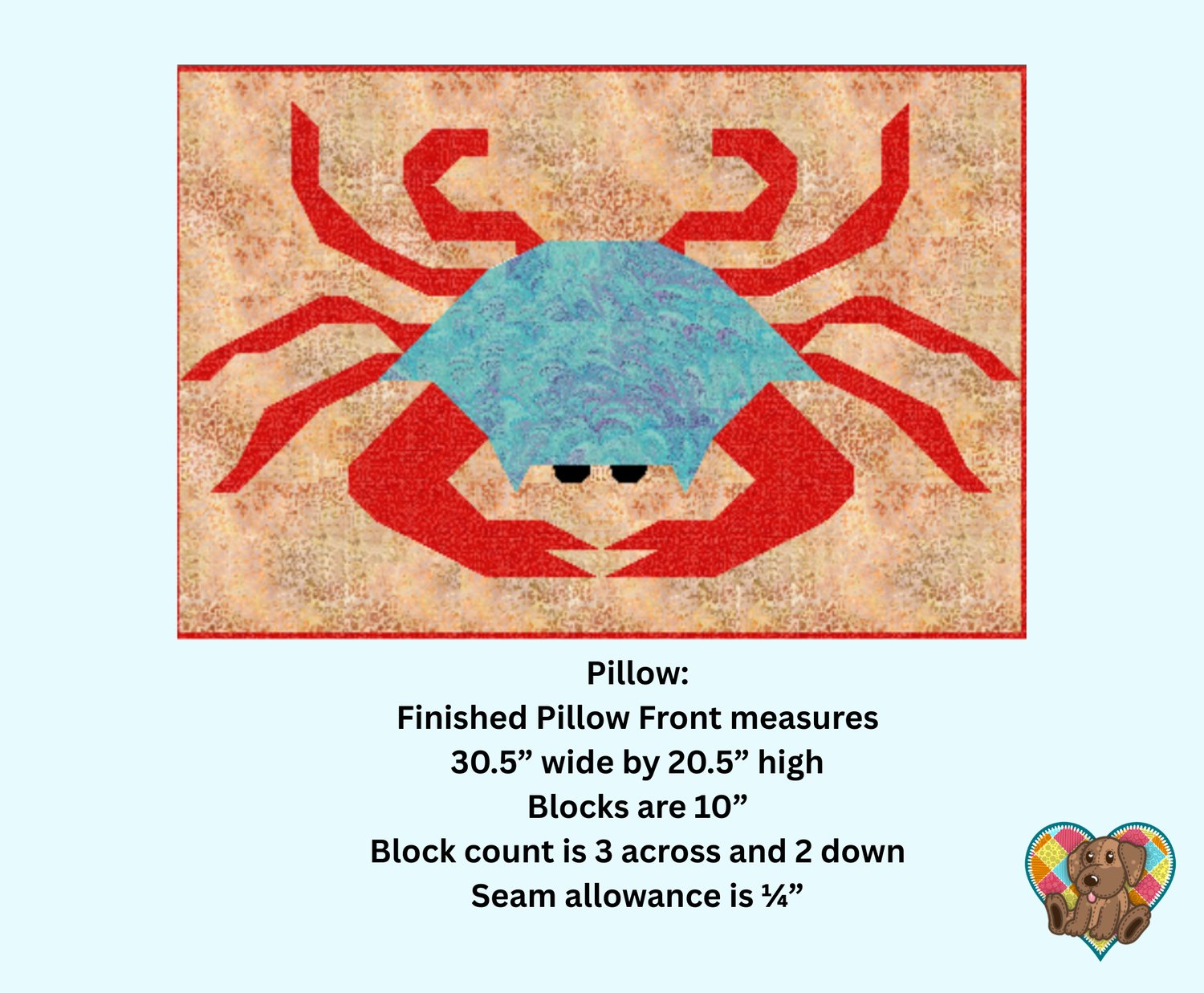 Blue Crab Pillow Sham Quilt Front Pattern