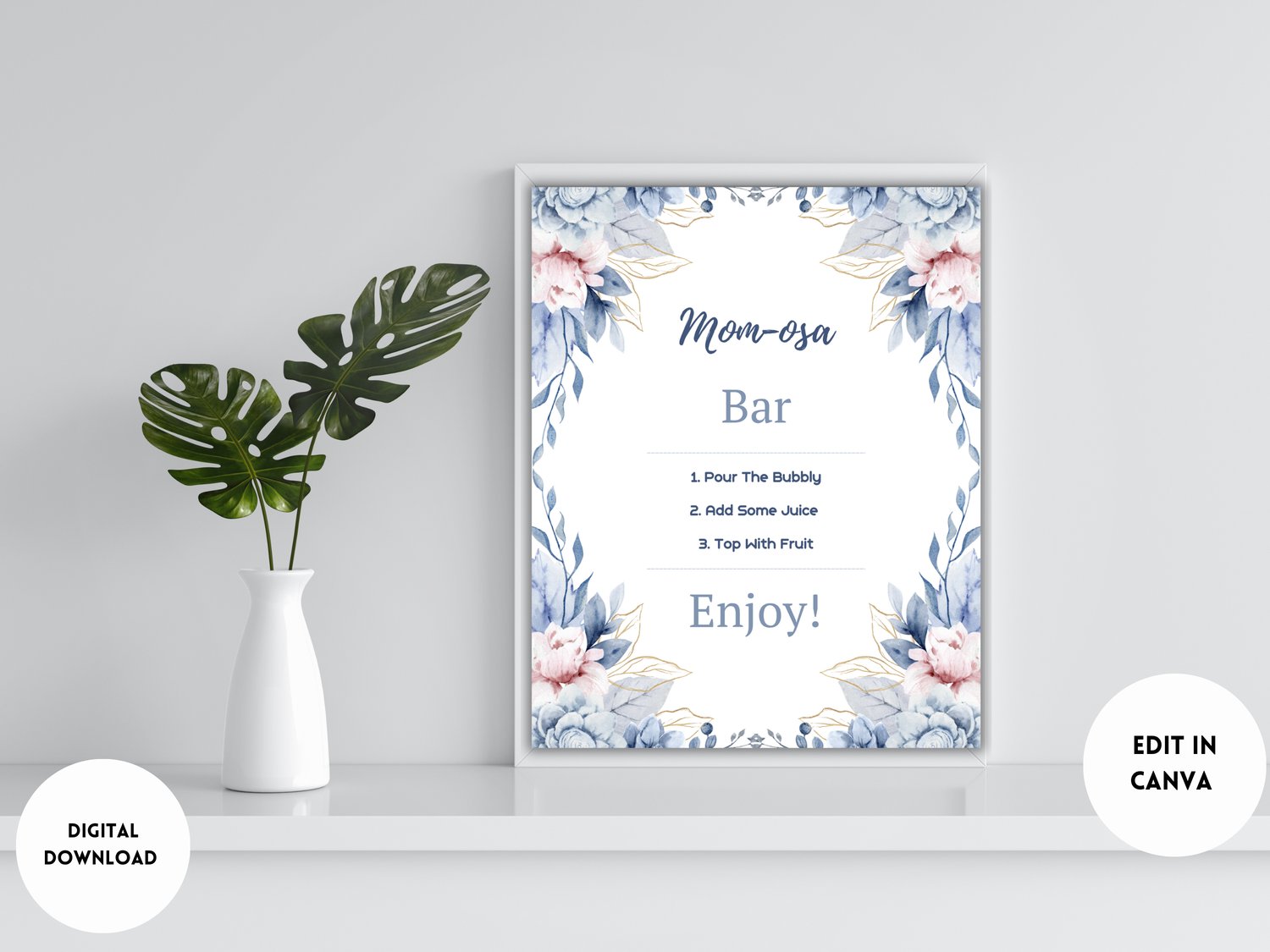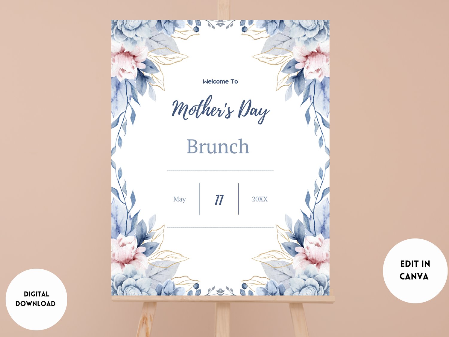 Mother's Day Brunch Menu | Blue Floral Tea Party Food Options | Mom's Breakfast And Lunch | Canva Template | Printable Paper Stationery