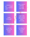 Introducing our 42 pack of Affirmation Cards - the perfect tool for anyone seeking to cultivate positivity and self-belief in their daily lives. Each card is carefully crafted with powerful affirmations designed to uplift your spirits, boost your confidence, and help you overcome any challenges you may be facing.