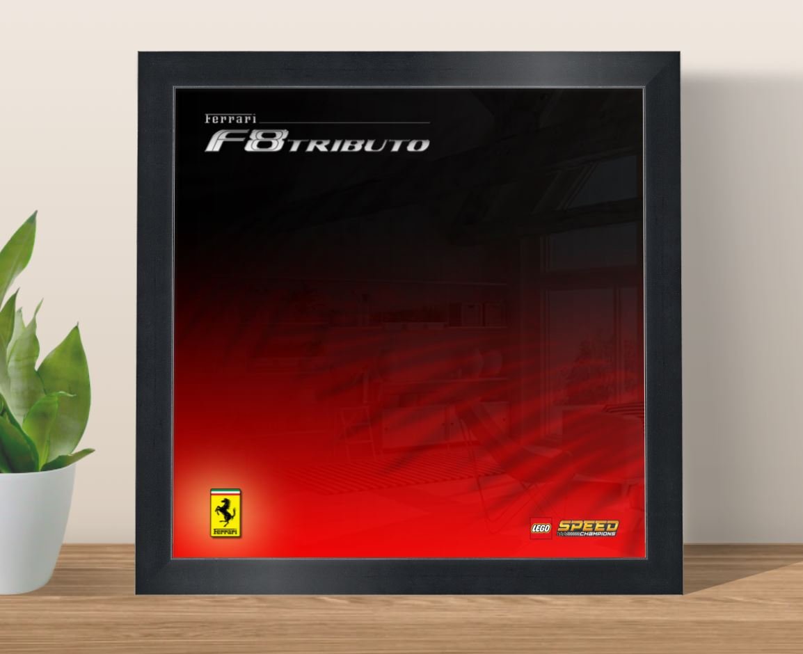 Showcase your LEGO Ferrari F8 Tributo (#76895) with this 25×25 cm poster (9.84 × 9.84 inches), perfectly sized for IKEA SANNAHED 25×25 cm frames, as well as display cases or shelves.