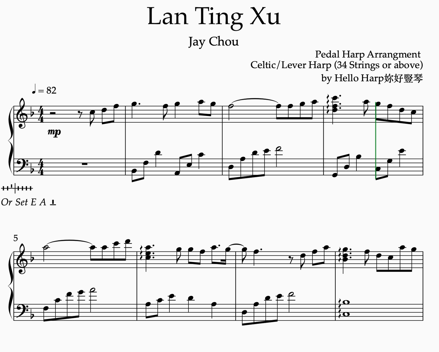 Lan Ting Xu - Jay Chou (Pedal Harp and Celtic/Lever Harp Sheet Music)