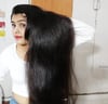 Sensual hairplay by long hair Rapunzel wearing short top