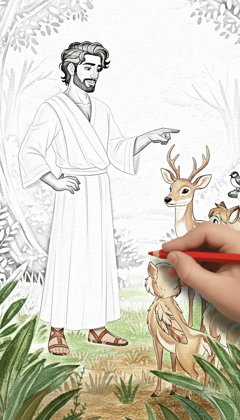 The book begins by narrating the story of Adam and Eve in a simplified, child-friendly manner, focusing on the core lessons and morals of the tale. Each page is accompanied by engaging illustrations ready for coloring, allowing children to unleash their creativity and imagination while absorbing the narrative.