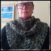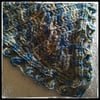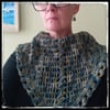 The cowl is crocheted as a triangular piece from the bottom tip up and then folded and seamed around the back of the neck. It can be made in any size and can be left unseamed to create a triangular shawl.