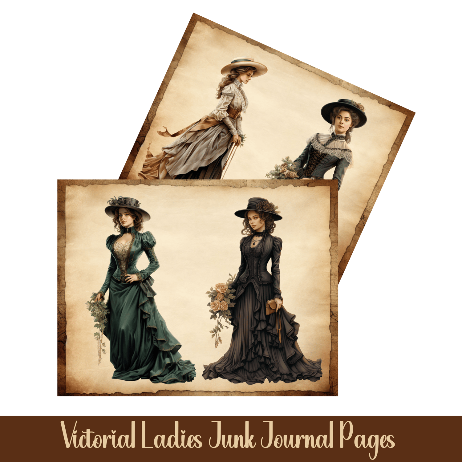 Tags: Victorian Junk Journal Pages, Vintage Ladies Printables, Antique Ephemera, Victorian Journal Inserts, Old-World Scrapbook Pages, Romantic Half Page Printables, Vintage Craft Supplies, DIY Junk Journal Ephemera