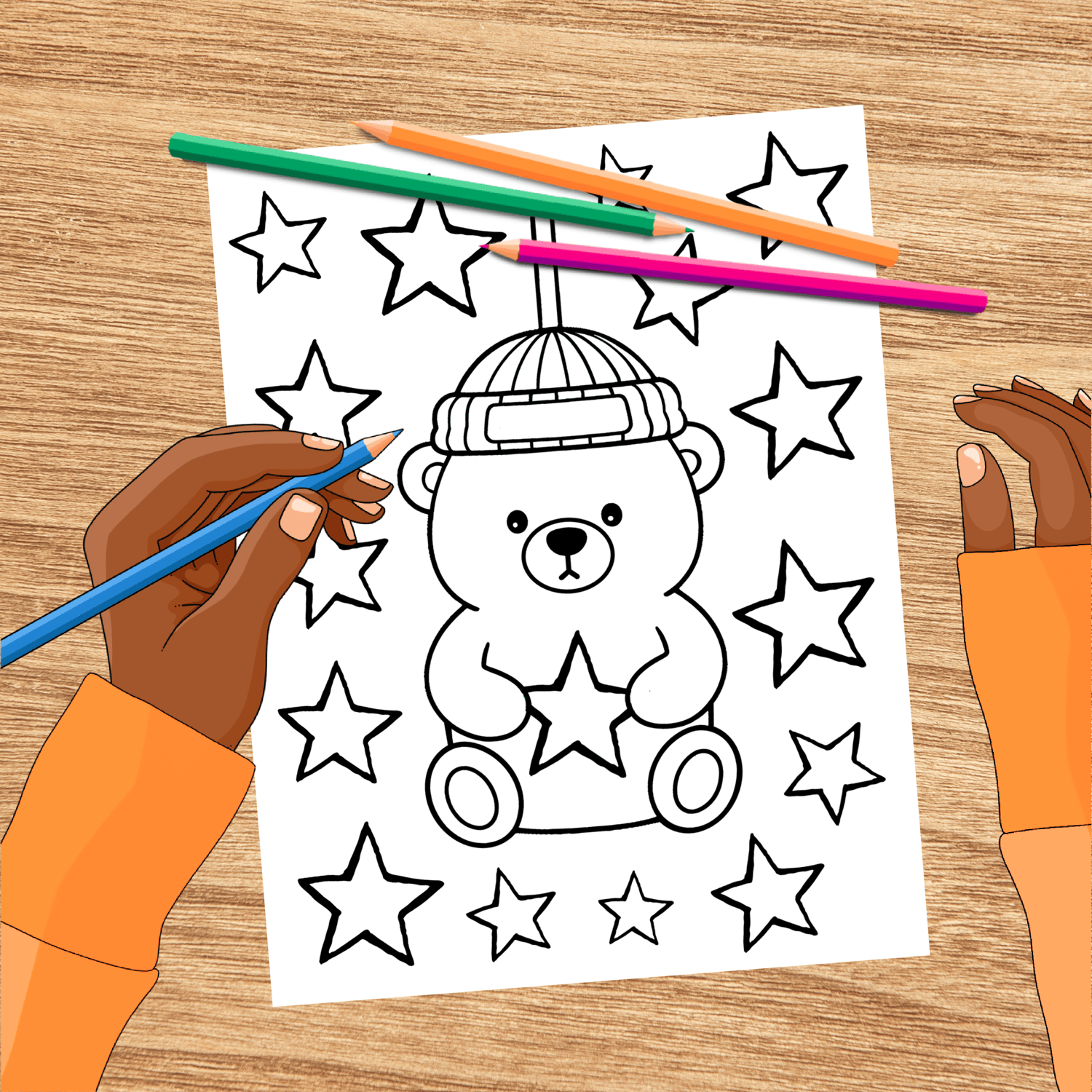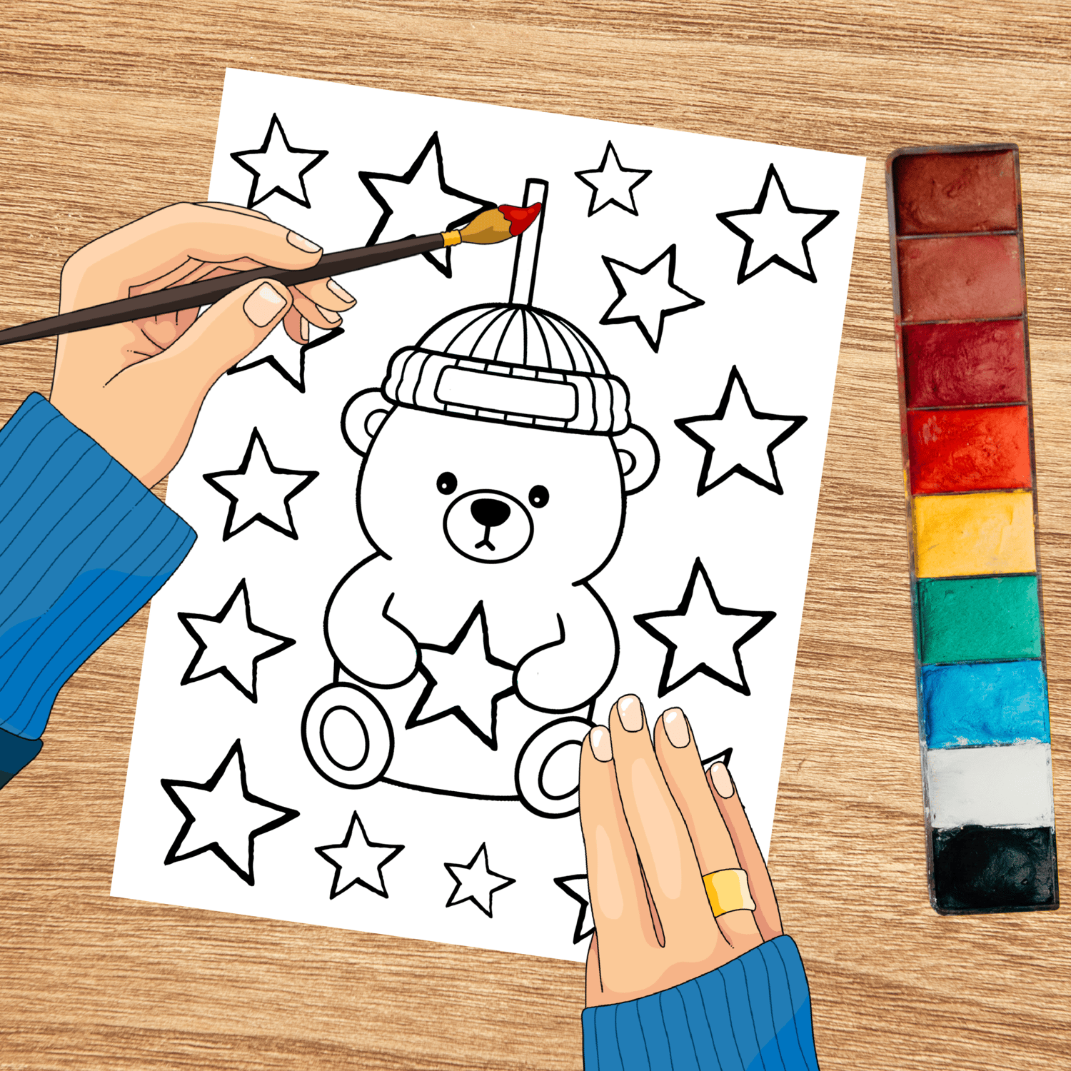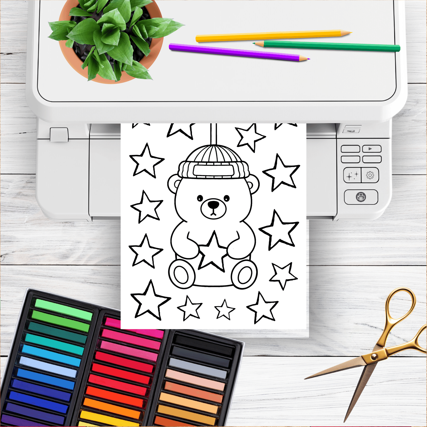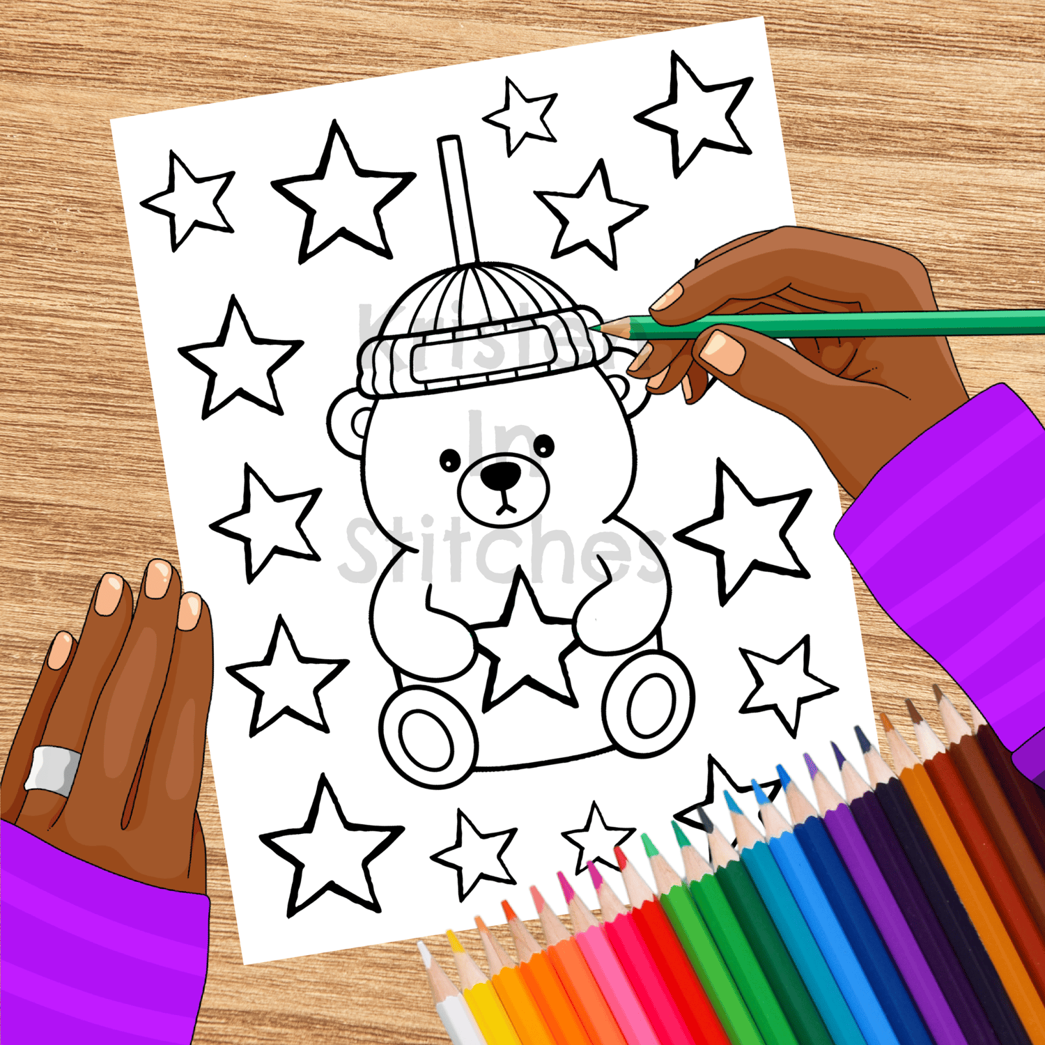 Bearista Bear Coloring Page, Printable 8.5x11 Paper, PDF & PNG File, Coffee Teddy Bear Cup