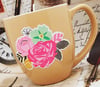Vela artesanal de parafina em caneca de cerâmica decorada à mão