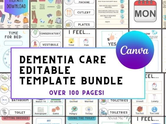 The Complete Dementia Elderly Care Bundle: 100+ Pages Editable Canva Templates, Communication Tools, Routine Cards, Flashcards for Memory Loss, Adult Special needs