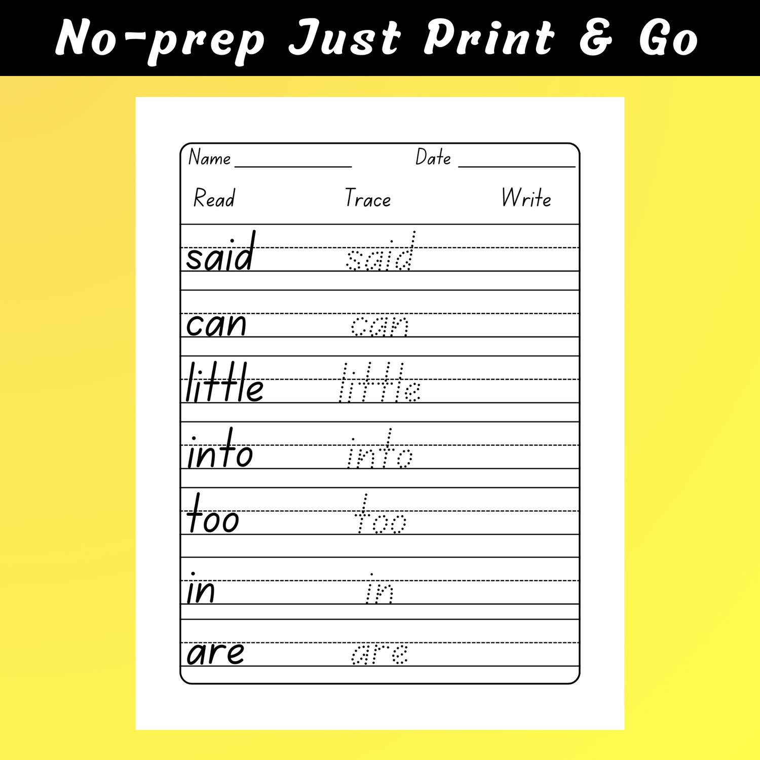 Enhance reading and writing skills with these engaging sight word worksheets, designed for 1st, and 2nd-grade students. This resource includes 105 high-frequency words, providing children with opportunities to read, trace, and write each one for enhanced word recognition, fluency, and spelling practice. Perfect for classrooms, homework, or homeschool learning.