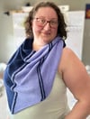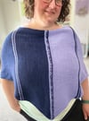 The pattern includes instructions for making 2 different sizes, Small and Large. The periwinkle/dark blue sample is the Large shawl. The Small shawl will have fewer stockinette sections.