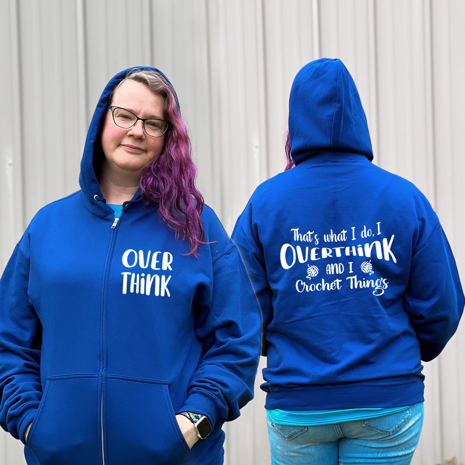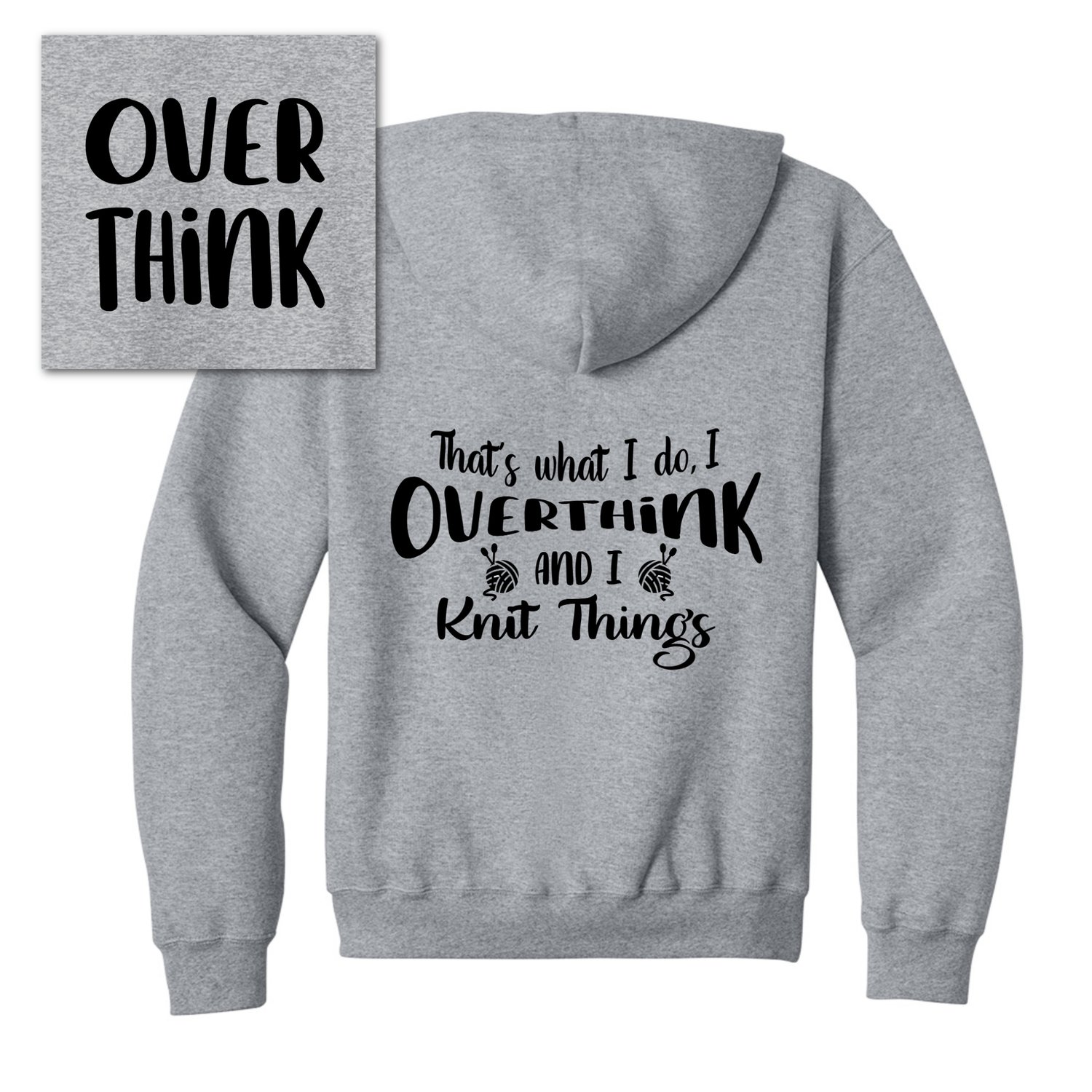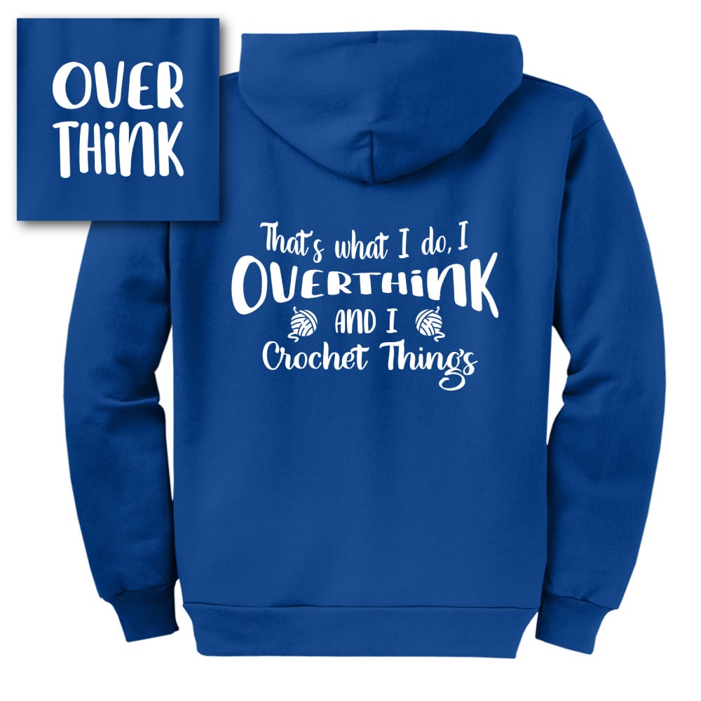 ✦ Funny Unisex Hooded Pullover with: "Overthink and Crochet" or "Overthink and Knit” design