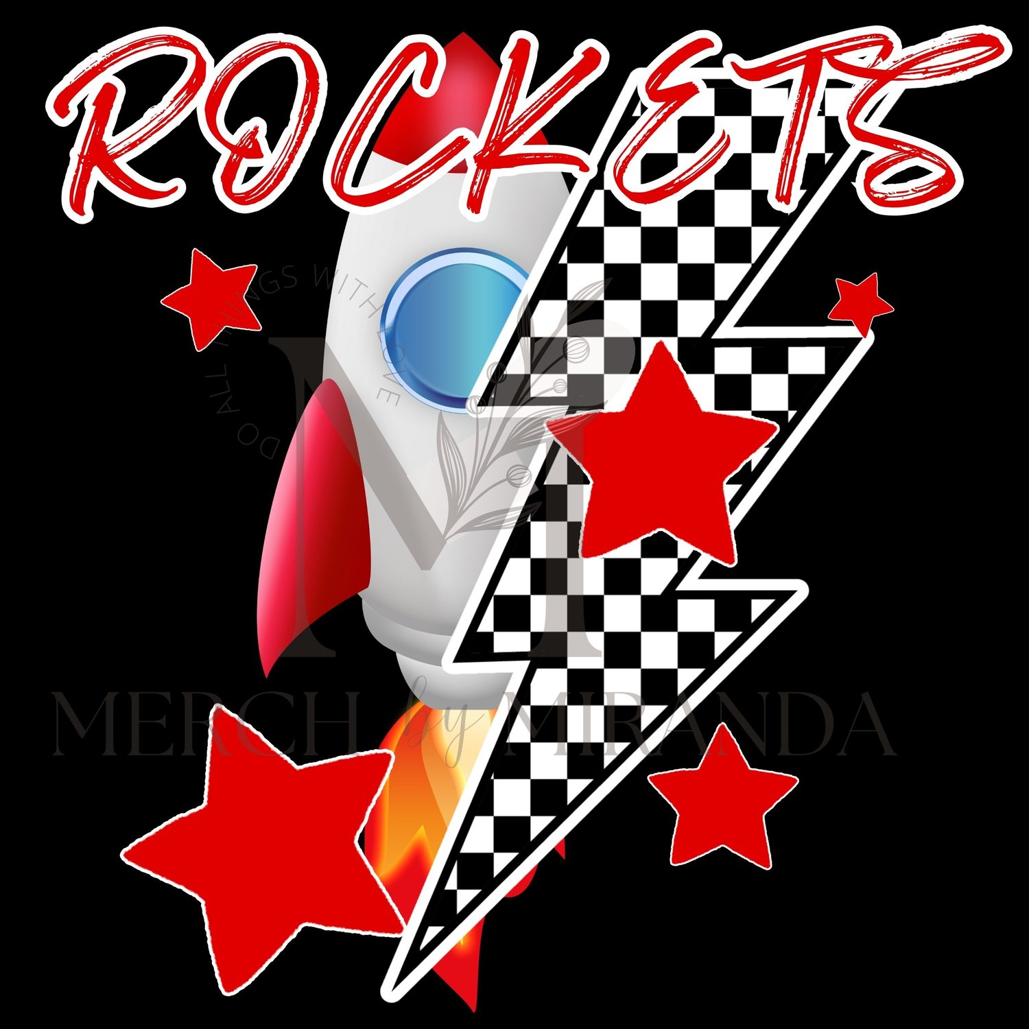 Rockets Mascot Red | Sublimation Design | Digital Download | School Spirit Shirt PNG | DTF Design | Lightning Bolt-Checkered with Stars - Raiders - Rocket