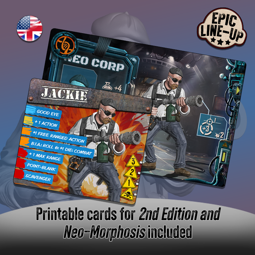 Printable cards for 2nd Edition and Neo-Morphosis are also included, making this character playable immediately with those games.