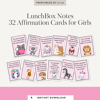 32 Printable Affirmation Cards for Kids' Lunchbox GIRLS | Motivation Cards | Positive Thoughts for Children and Teens