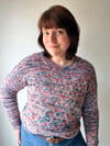 For this design, I set myself a clear challenge: working with a highly variegated yarn without relying on all over stockinette. The texture was carefully designed to find its place within this dense field of colour, creating balance and rhythm without overpowering it.
