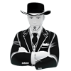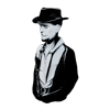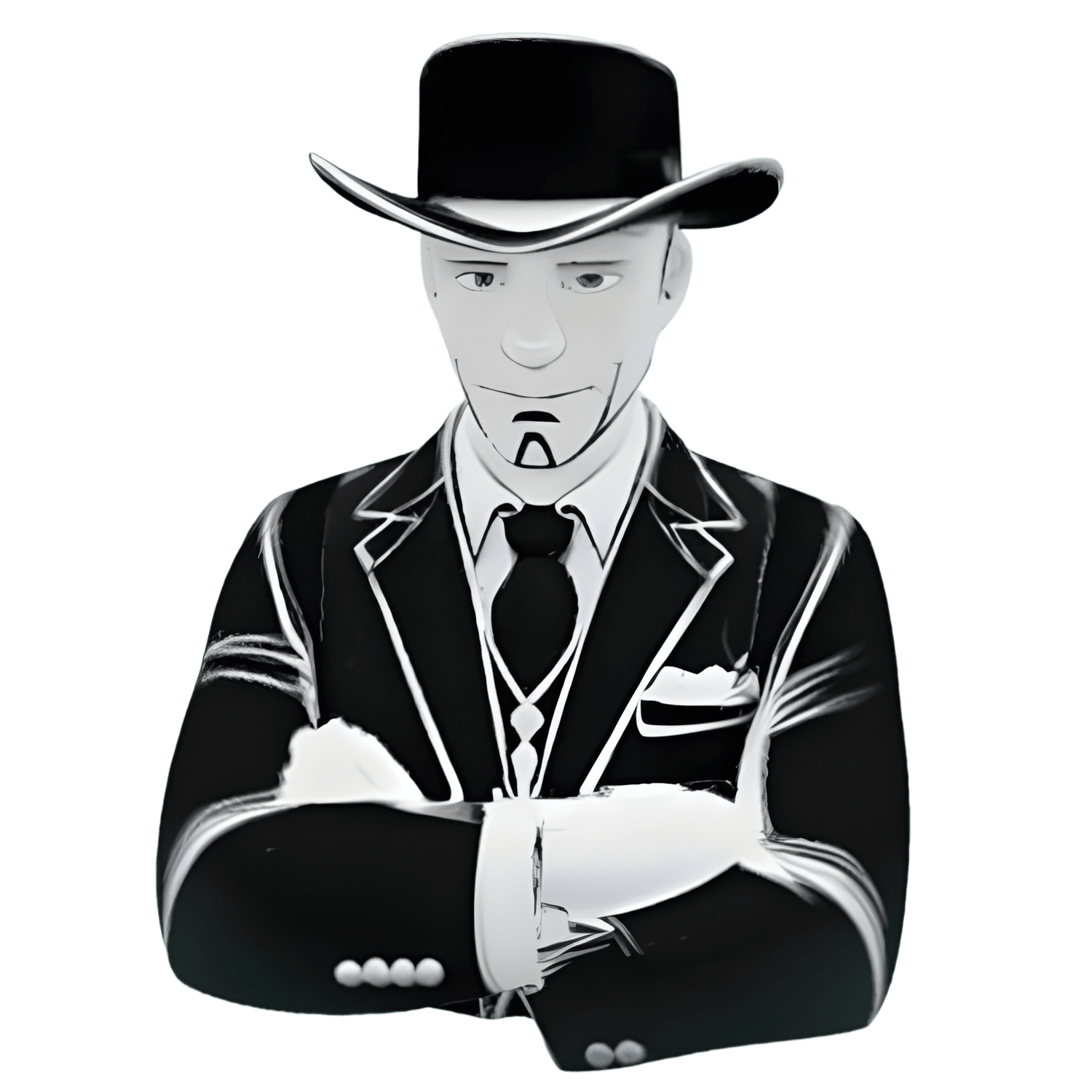 - A mysterious figure with a bowler hat and goatee, sporting a dapper three-piece suit